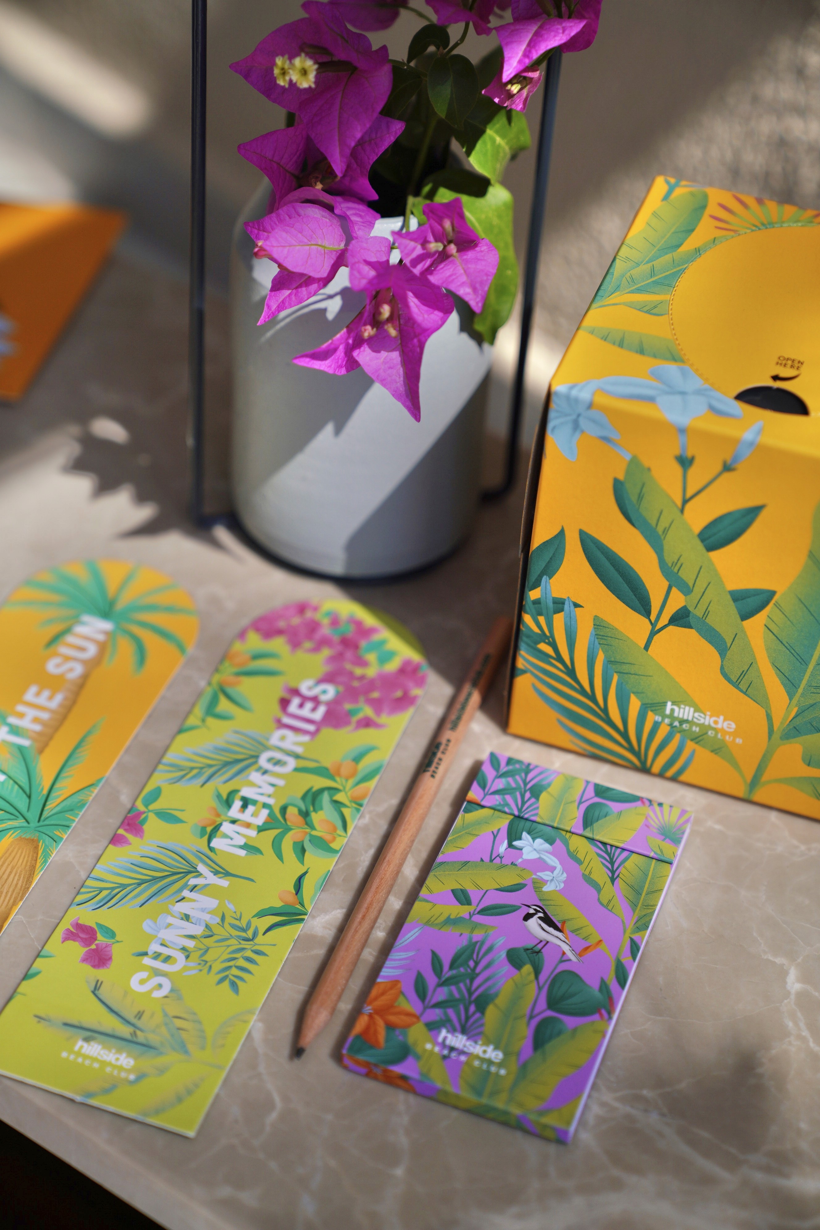 Step into the sunlight with Hillside and collect your joyful colorful memories! Packaging and visual identity developed with digital illustrations which represent warmth, joy and fullfilment of summer vibes. Orange, violet and desert rose all we need for a relaxed visit.