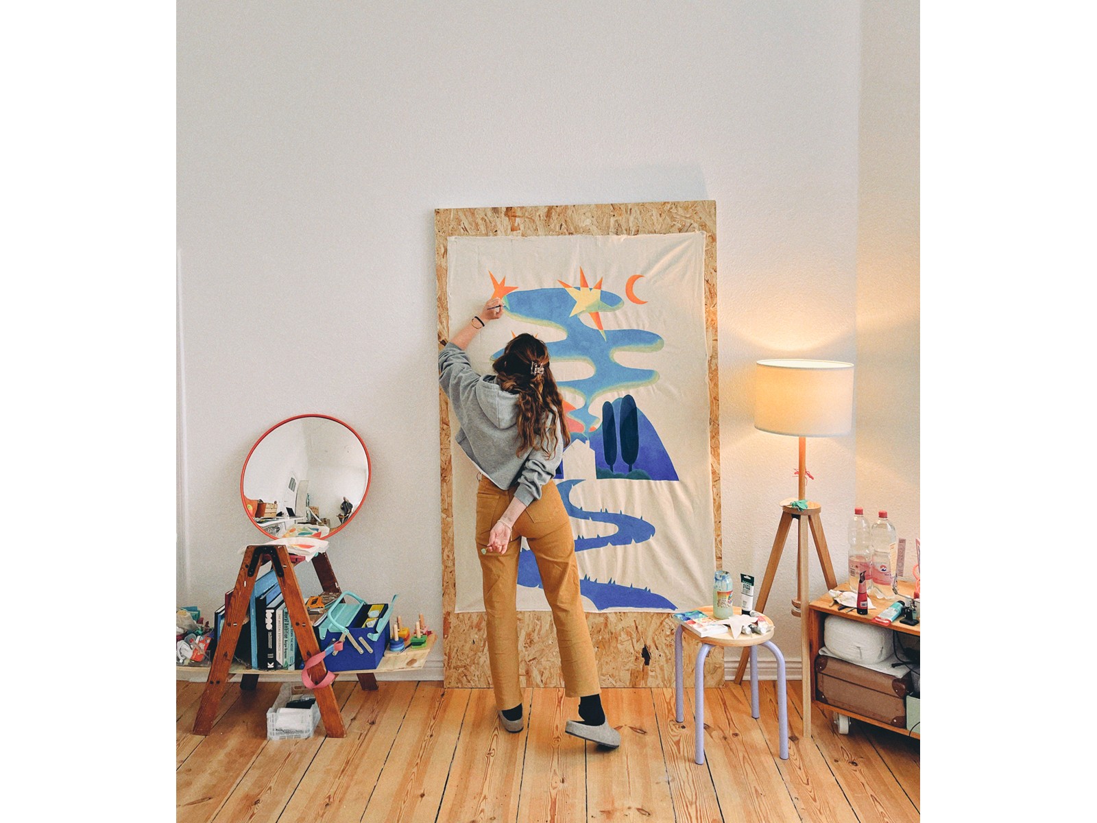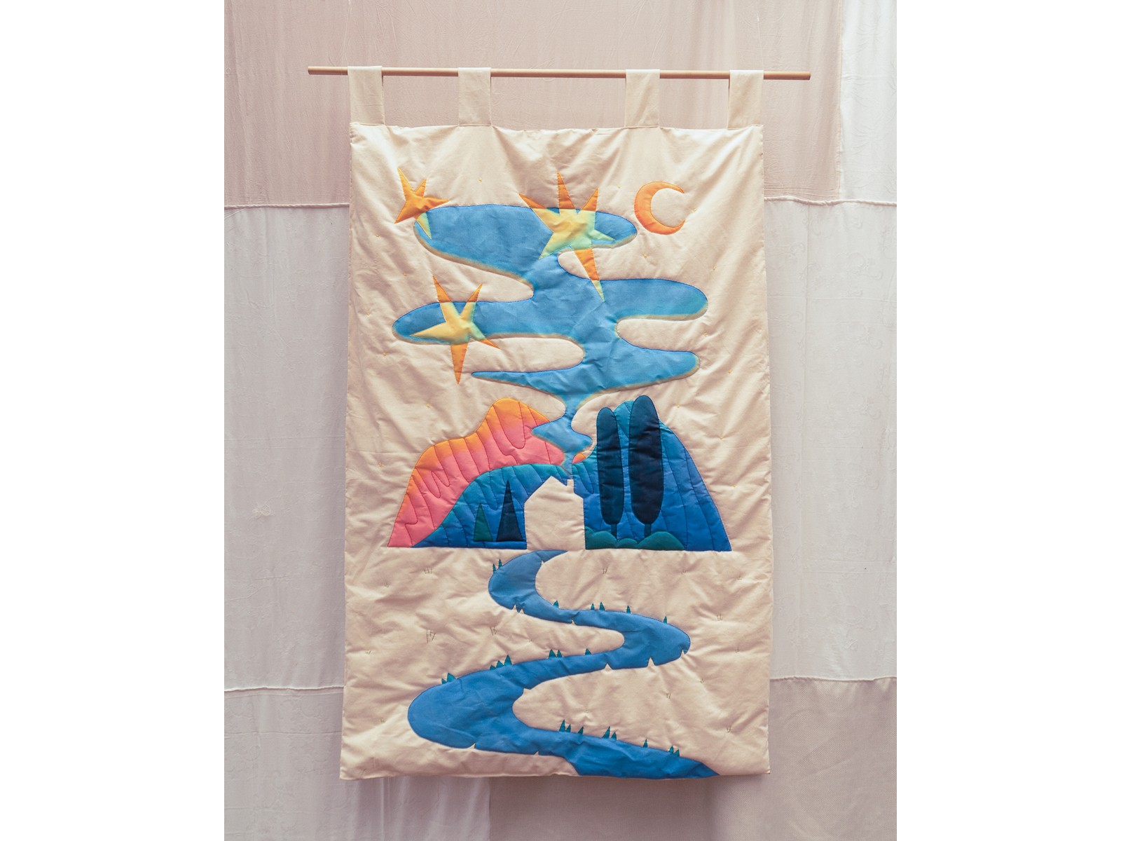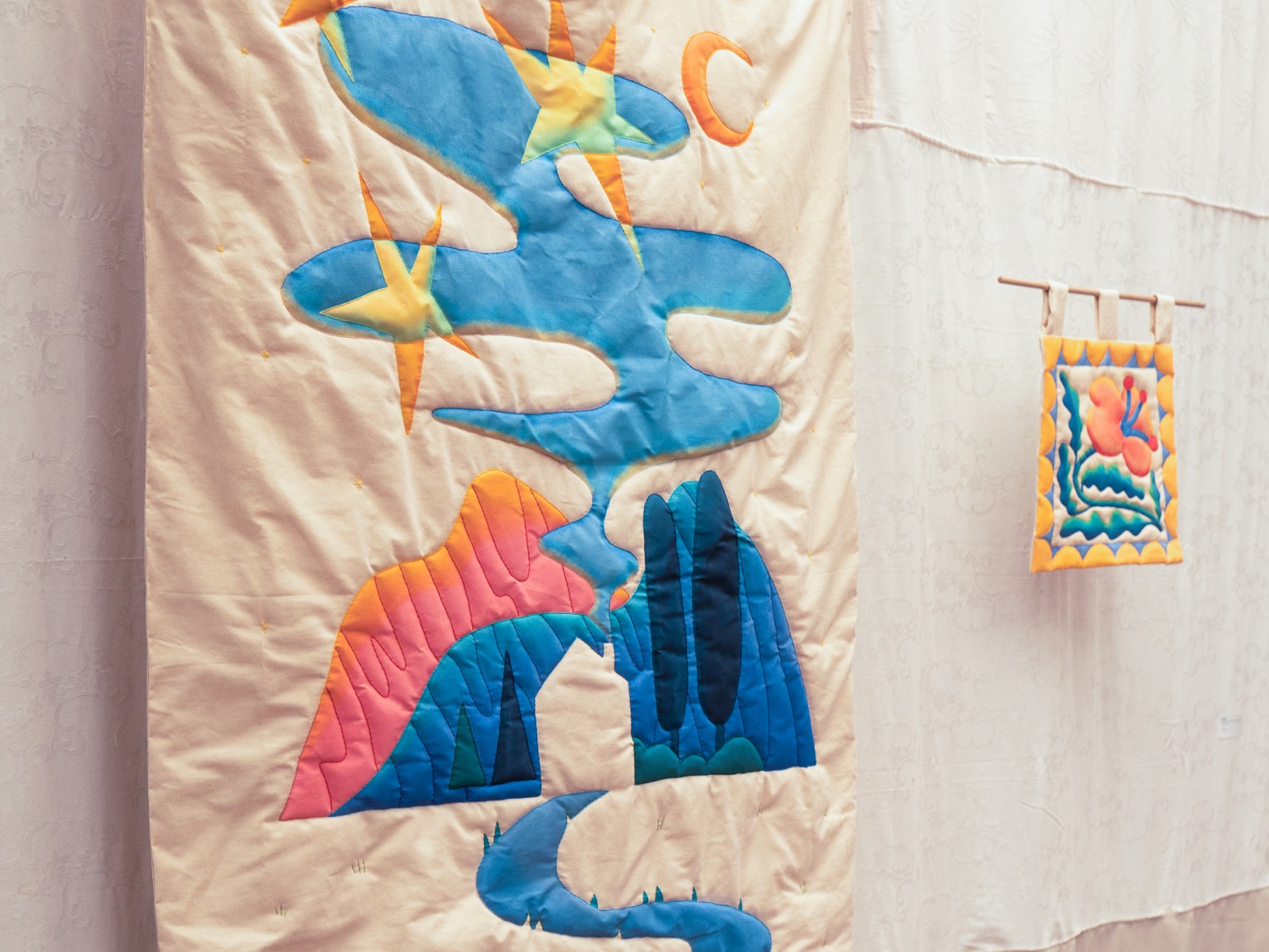 Acrylic and embroidery on fabric