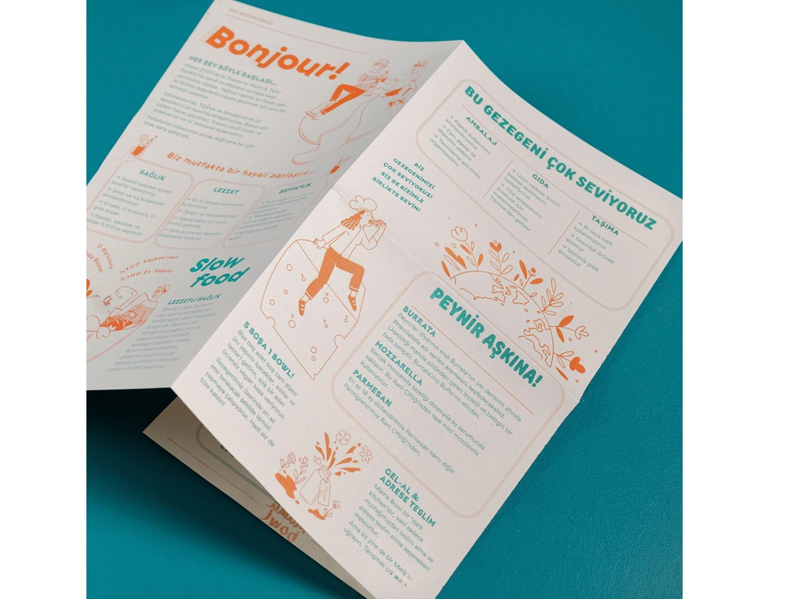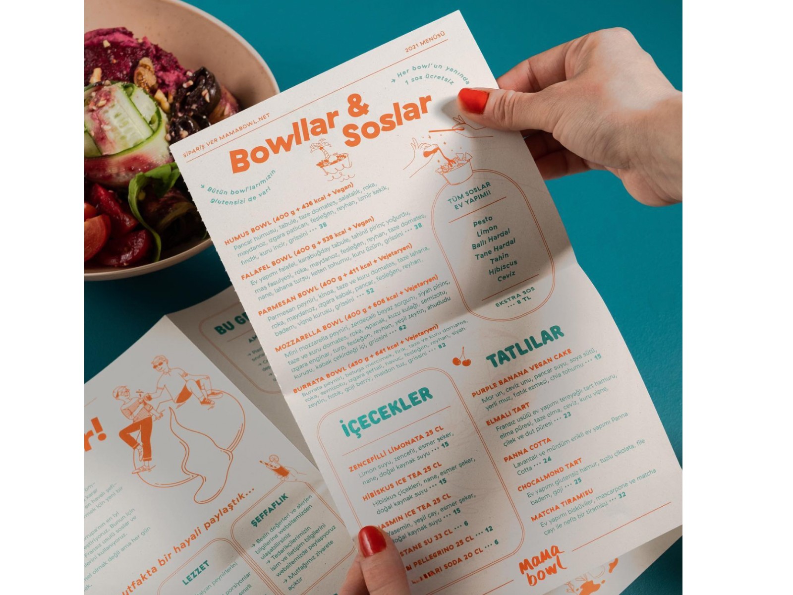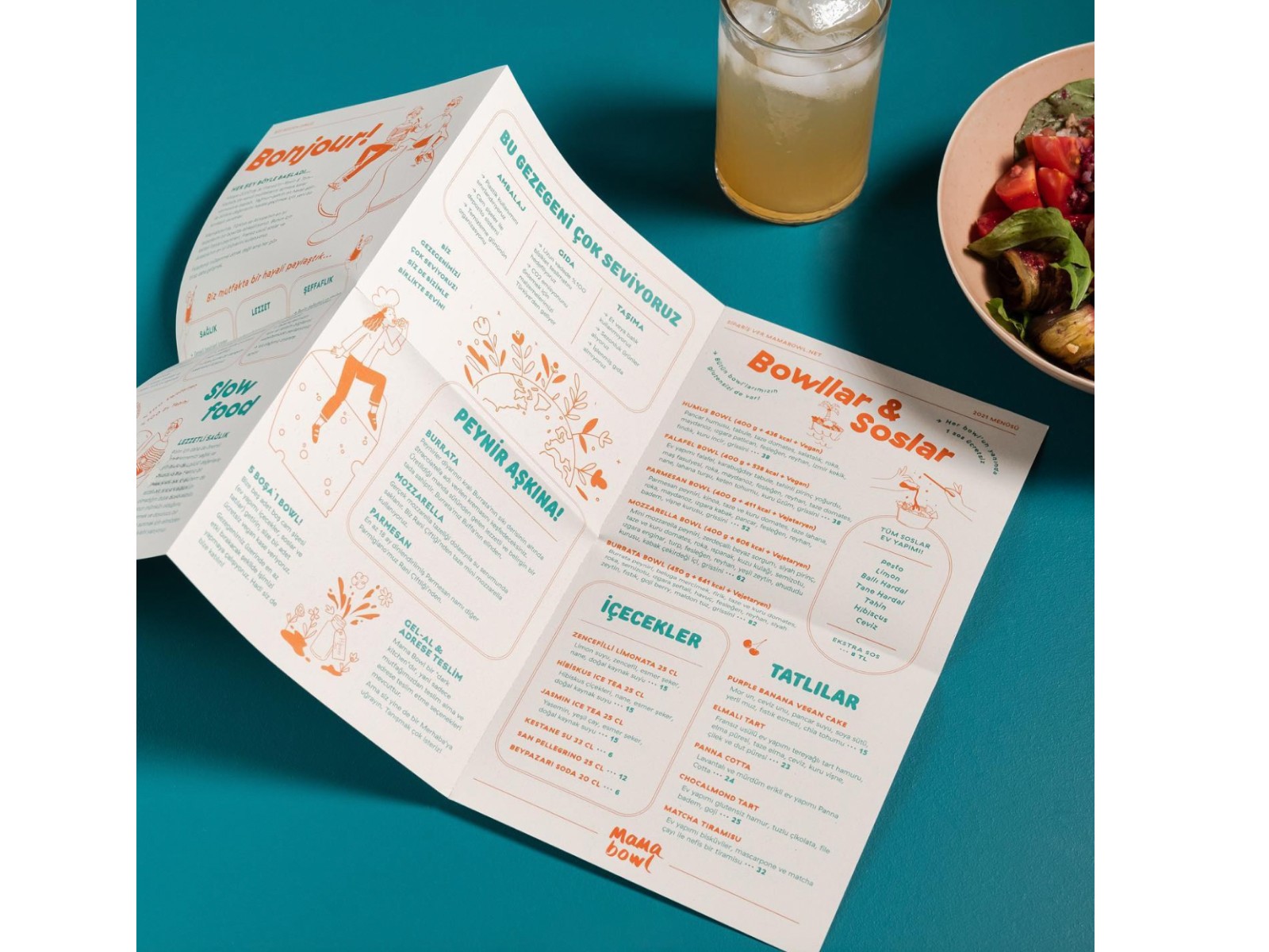 Custom illustrations were created for the menu of Mama Bowl, located in Kadıköy, Moda. The project was developed in collaboration with Ekin İsim, who led the overall design, while the illustrations were produced by me.